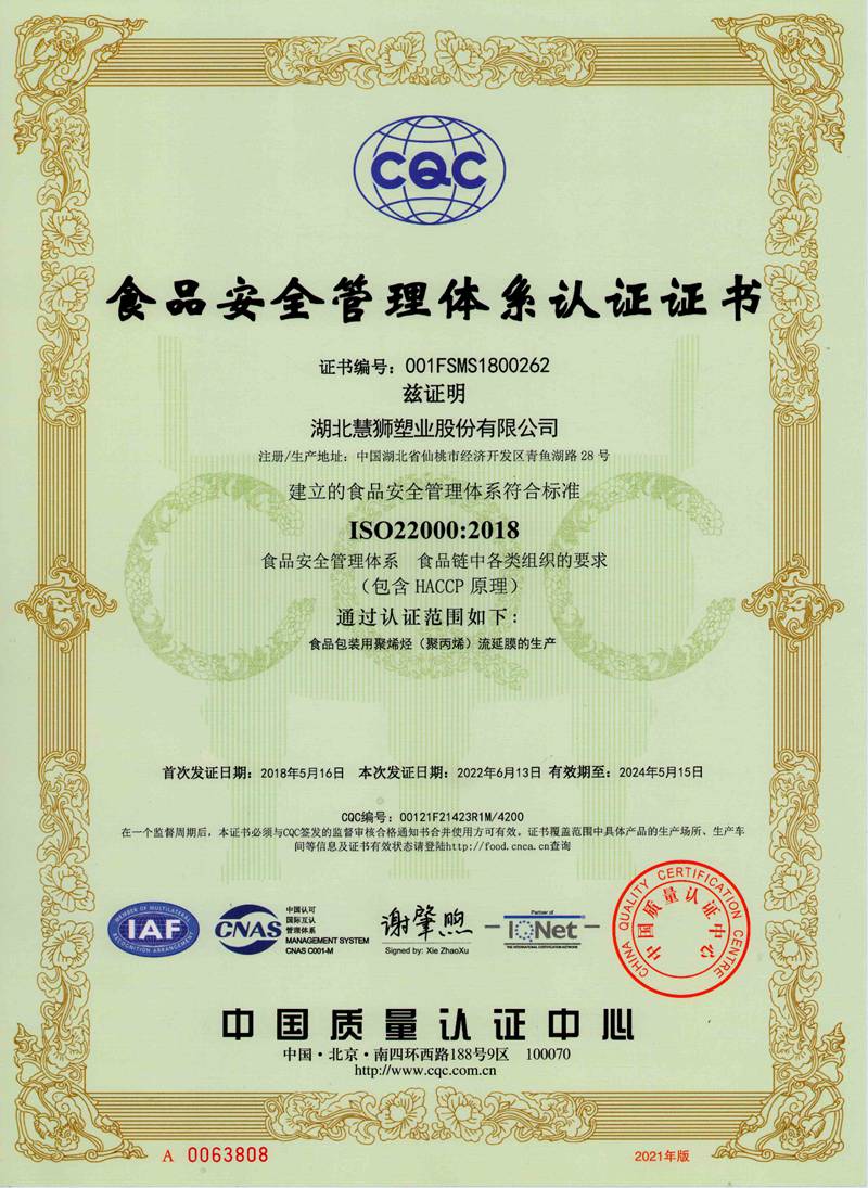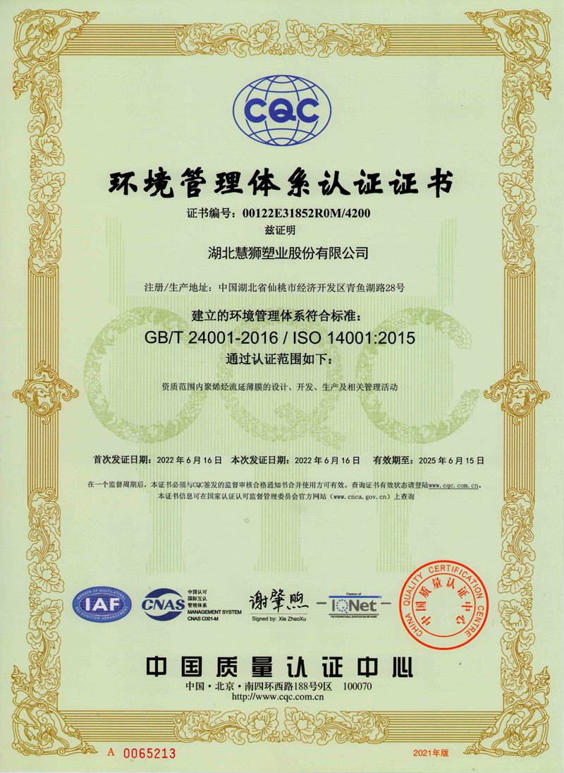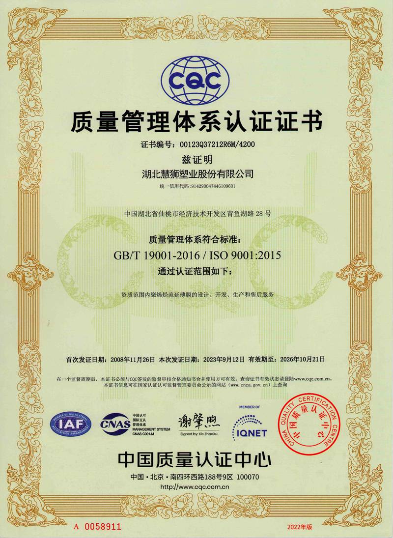 湖北慧獅塑業(yè)股份有限公司是一家專業(yè)從事研發(fā)、生產(chǎn)、銷售高性能聚烯烴流延薄膜的高新技術(shù)企業(yè)。